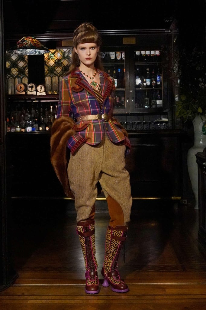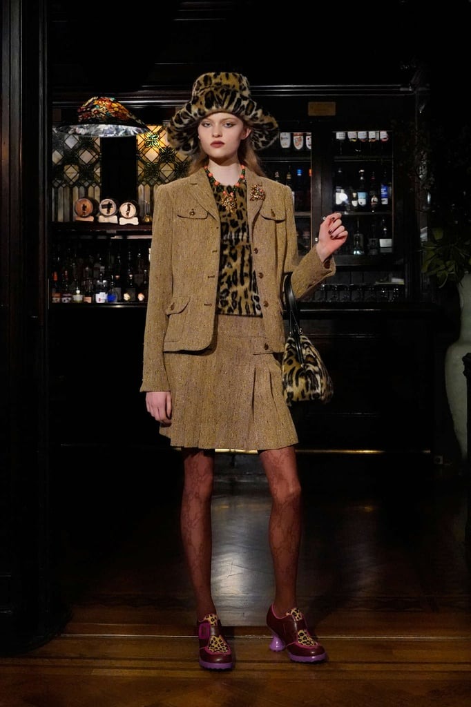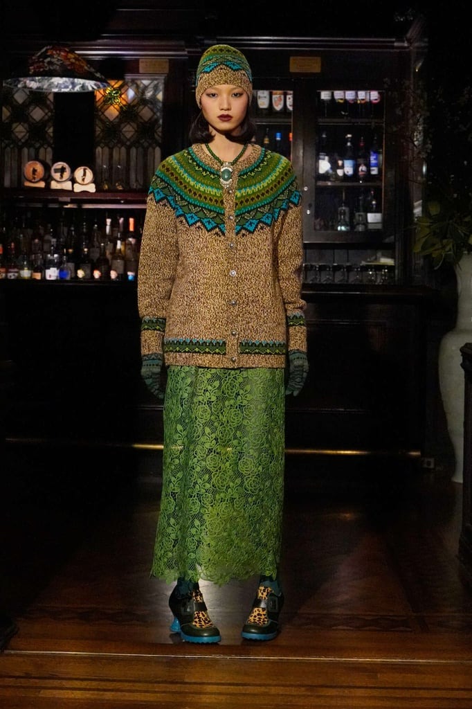 Los vestidos vaporosos, las chaquetas con bordados y los detalles en encaje evocaron una nostalgia refinada, mientras que la incorporación de botas altas, guantes de cuero y accesorios llamativos añadieron un aire de rebeldía. La pasarela de Sui demostró que la moda puede ser una forma de escapismo sin perder relevancia en el presente.