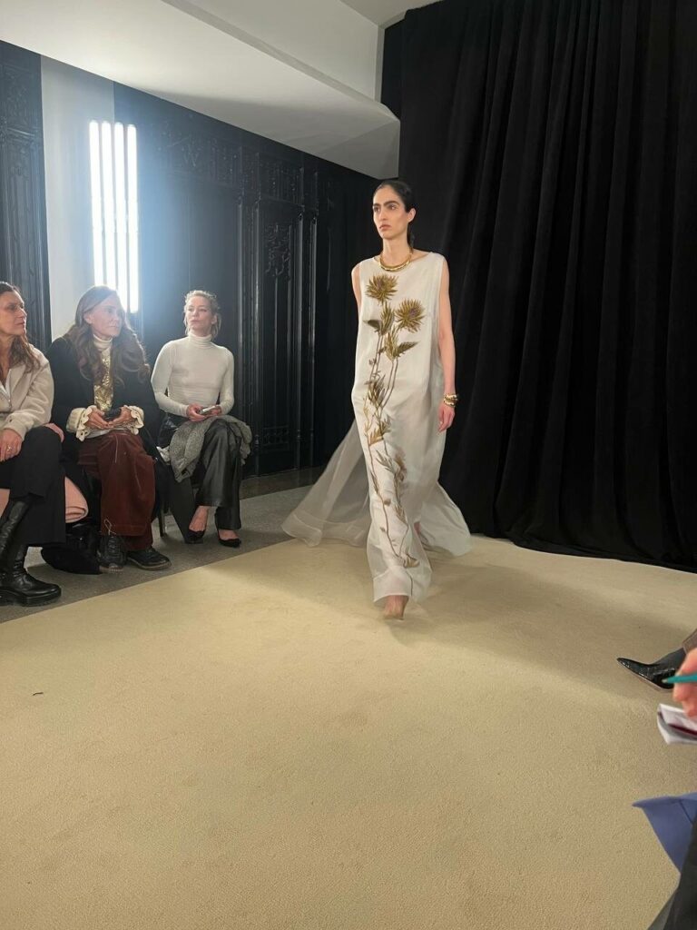 Las capas superpuestas, las chaquetas estructuradas y los vestidos con drapeados envolventes resaltaron el enfoque refinado de la marca, mientras que los detalles de flecos, brillos y transparencias agregaron un toque de modernidad. Sin duda, Altuzarra sigue marcando el rumbo de una feminidad poderosa y cosmopolita.