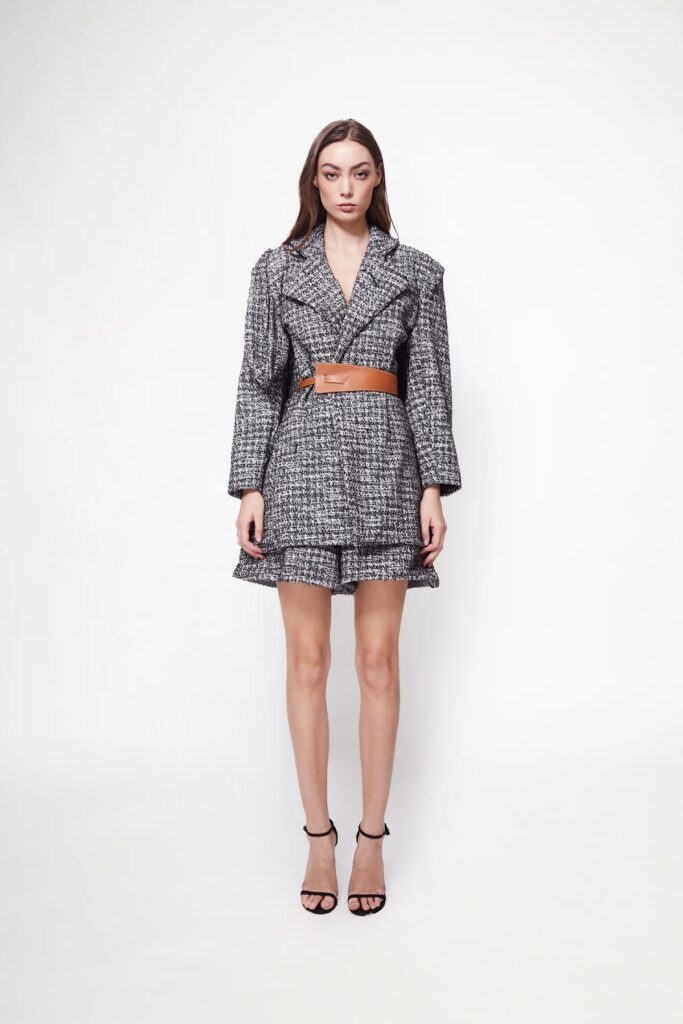 Cada prenda es una conversación entre el pasado y el presente, donde la historia se entrelaza con la modernidad. Sus diseños presentan cortes estructurados y minimalistas que permiten que los detalles artesanales brillen con protagonismo, logrando así una propuesta que resulta sofisticada y funcional al mismo tiempo.