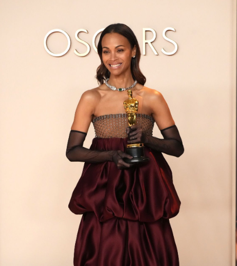 Haciendo historia como la primera actriz estadounidense de ascendencia dominicana en ganar un Oscar, Saldaña apostó por un diseño semitransparente de Saint Laurent para la fiesta posterior. El vestido fluido, con detalles estratégicamente ubicados, resaltó su figura con un equilibrio perfecto entre sensualidad y sofisticación.