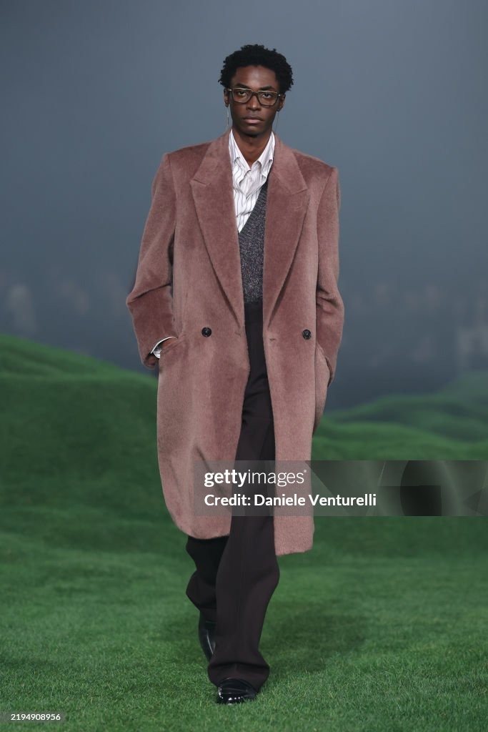 MILAN, ITALY – JANUARY 20: A model walks the runway at the Zegna fashion show during the Milan Menswear Fall/Winter 2025 – 2026 Fashion Week on January 20, 2025 in Milan, Italy. (Photo by Daniele Venturelli/WireImage)