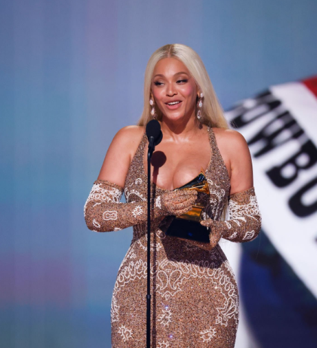 Aunque no pasó por la alfombra roja, Beyoncé acaparó miradas al recibir su premio en un vestido cubierto de cristales con un diseño de paisley, reafirmando su título de Reina del Estilo.
